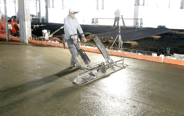 市場規模の拡大が続くeコマース市場において、物流倉庫の新設も加速して伸びている中、倉庫の要でもあるコンクリート床施工においてはひび割れ、表面剥離、レベル精度に加え美観が重要視されています。その観点から、スランプ値15以下の硬練コンクリートは必須となります。スランプ値15以下というと、今までのように土間職人が手作業でタンピングや均し作業をすることは容易ではありません。