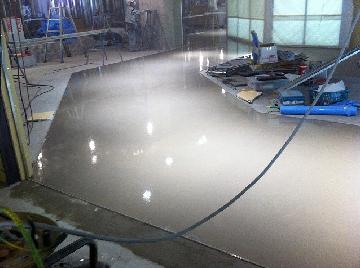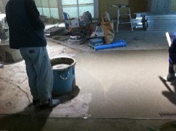 流し込み完了。水平も取れて平滑な床に仕上がりました。