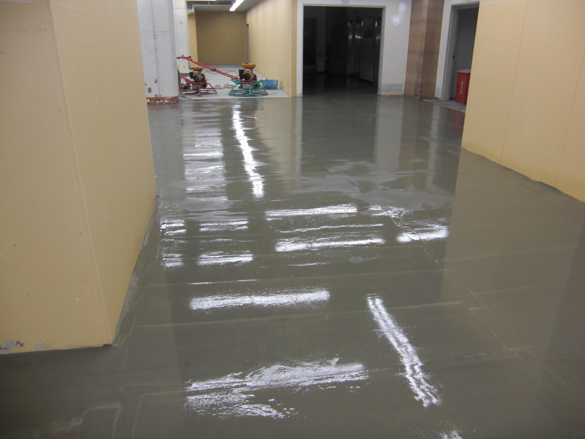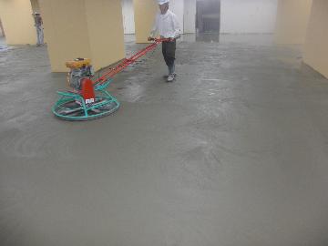 円盤にて不陸調整をした後、機械ゴテの羽を回転させ、立て横方向に運転して交互に回転させ、より精度を向上さるよう均等に一定のスピードで回転させます。また、チリ廻りは手押えにて行い、平場部分と同じ仕上がりになるよう乾き具合を調整しながら押えこみます。