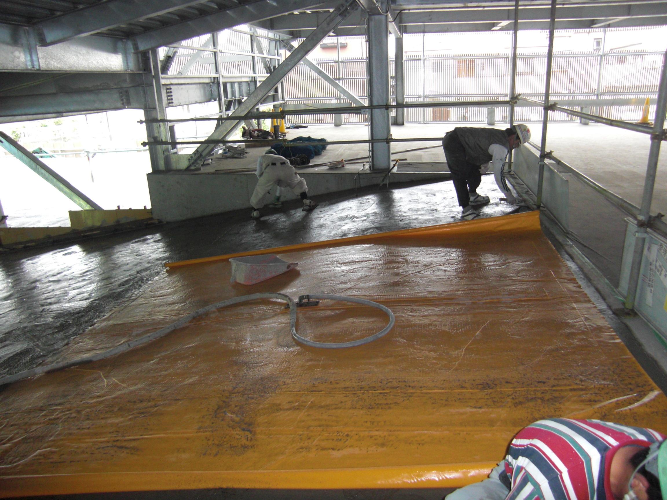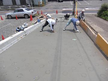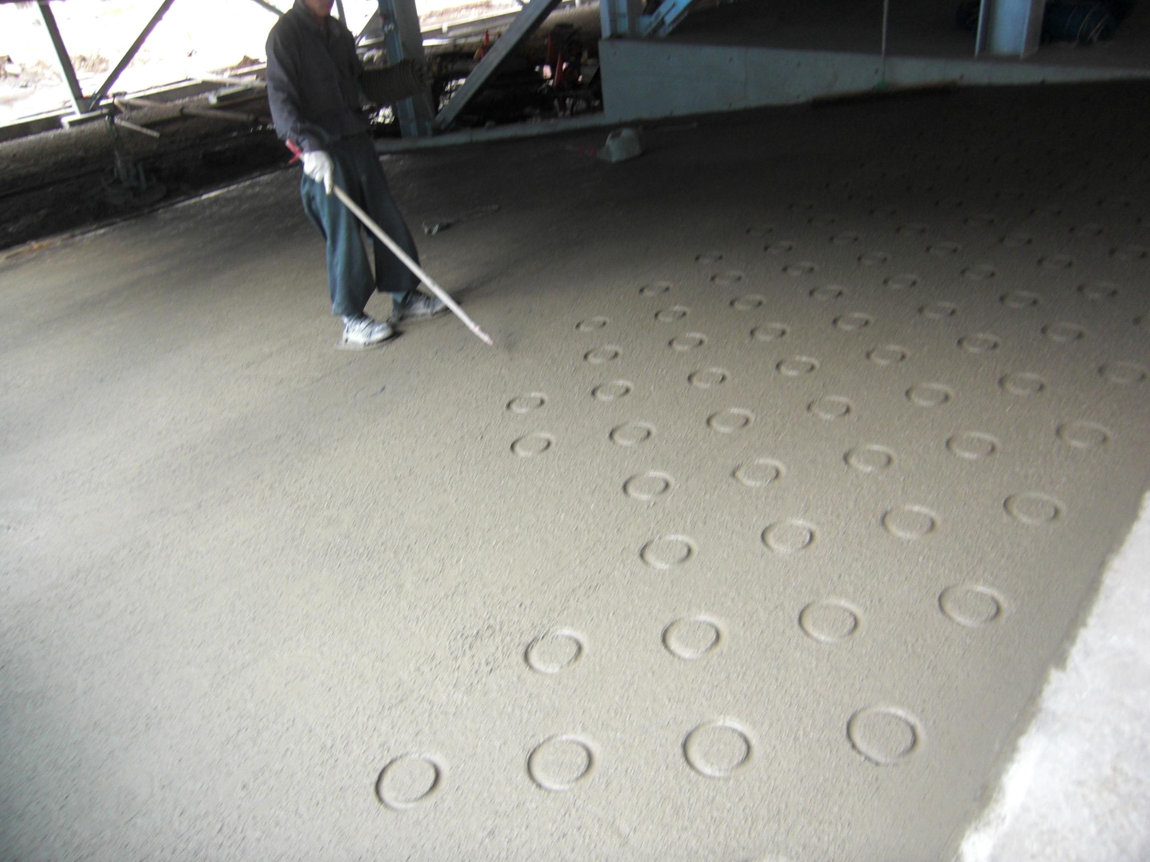 真空マットを床表面にかぶせ、真空ポンプを稼働させ、コンクリート中の余剰水をを除去します。