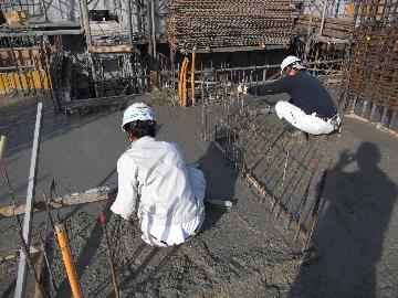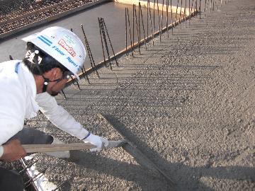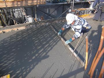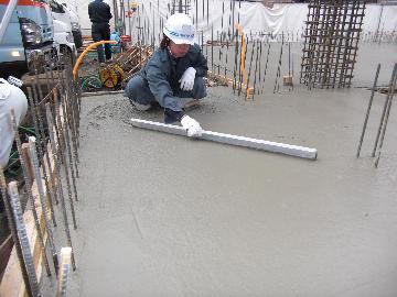 ポンプ車から圧送された生コンをカッパギにてあら均しします。
