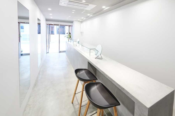 ジュエリー店の改修工事をいたしました。モールテックスはほぼ全ての下地に塗ることが可能なので、木のカウンターにモールテックスを塗りコンクリート調に仕上げました。無機質でシンプルなカウンターは主張がなく、商品を引き立ててくれます。モールテックスは塗る素材を選ばず色も豊富なので、場の雰囲気を変えたい時などに最適です。