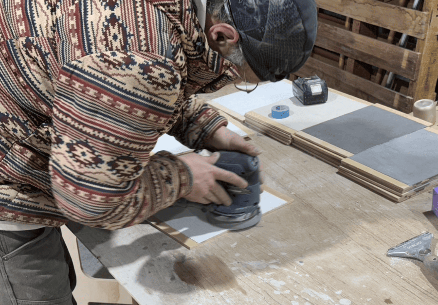 フロアエージェントのモールテックス施工では、材料の配合から細かな仕上げ方法まで、すべてが適切になるように現場ごとに職人同士の情報共有を徹底して行っています。