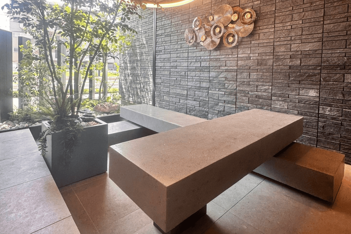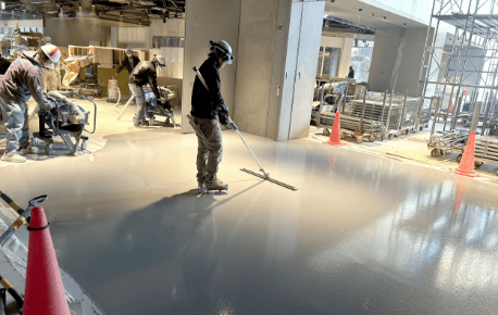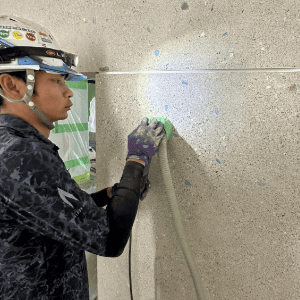弊社では大人数の職人派遣+高出力研磨機の使用による、大面積の研ぎ出し仕上げにも対応しております。プランニング・材料の手配・施工まで全て一気通貫でご依頼いただけますので、商業施設等の新設・改修問わず、エクストン使用による研ぎ出し工事をご検討中の方は是非一度ご連絡ください。