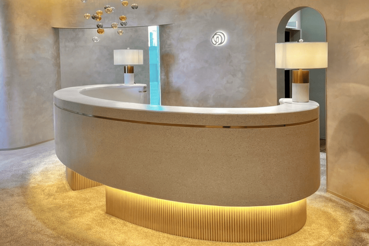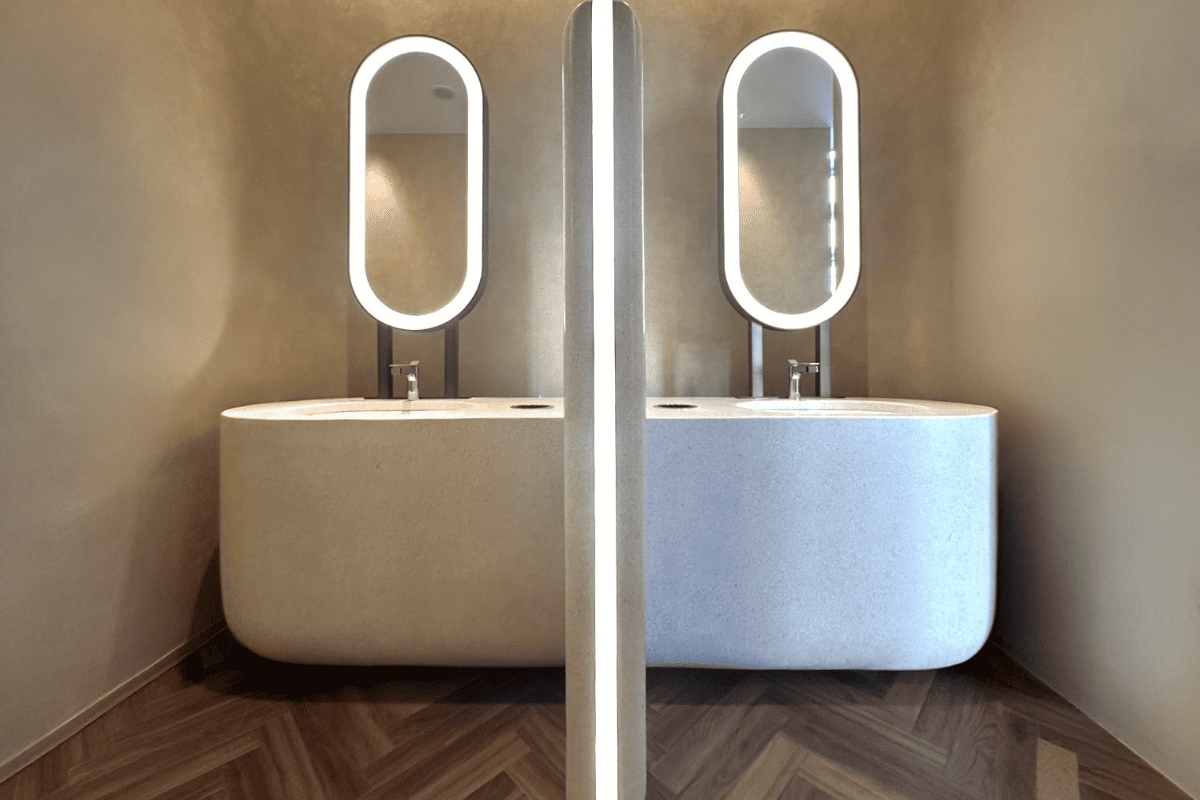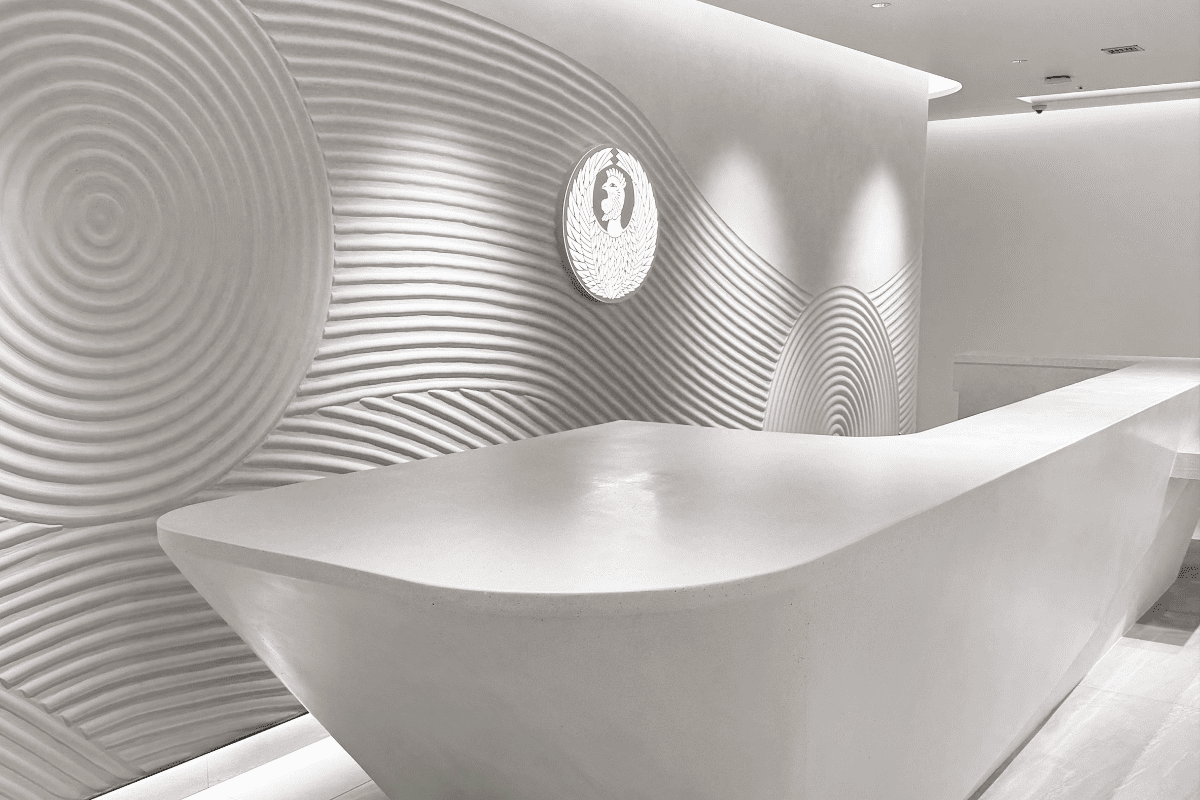 モールテックス仕上げは、ベルギー発祥の薄塗りで高い強度と防水性を発揮し、床・壁・什器・水回りまでシームレスにつなげられる機能性の高い左官仕上げです。セメント系に樹脂を配合することで密着性と柔軟性を確保し、新築はもちろん改修にも対応。豊富な色調とコテワークで質感を設計でき、空間の象徴となる意匠を実現します。フロアエージェントは商業施設・オフィスを中心に施工実績が豊富で、サンプル提示から施工引き渡しまで一貫して対応いたします。