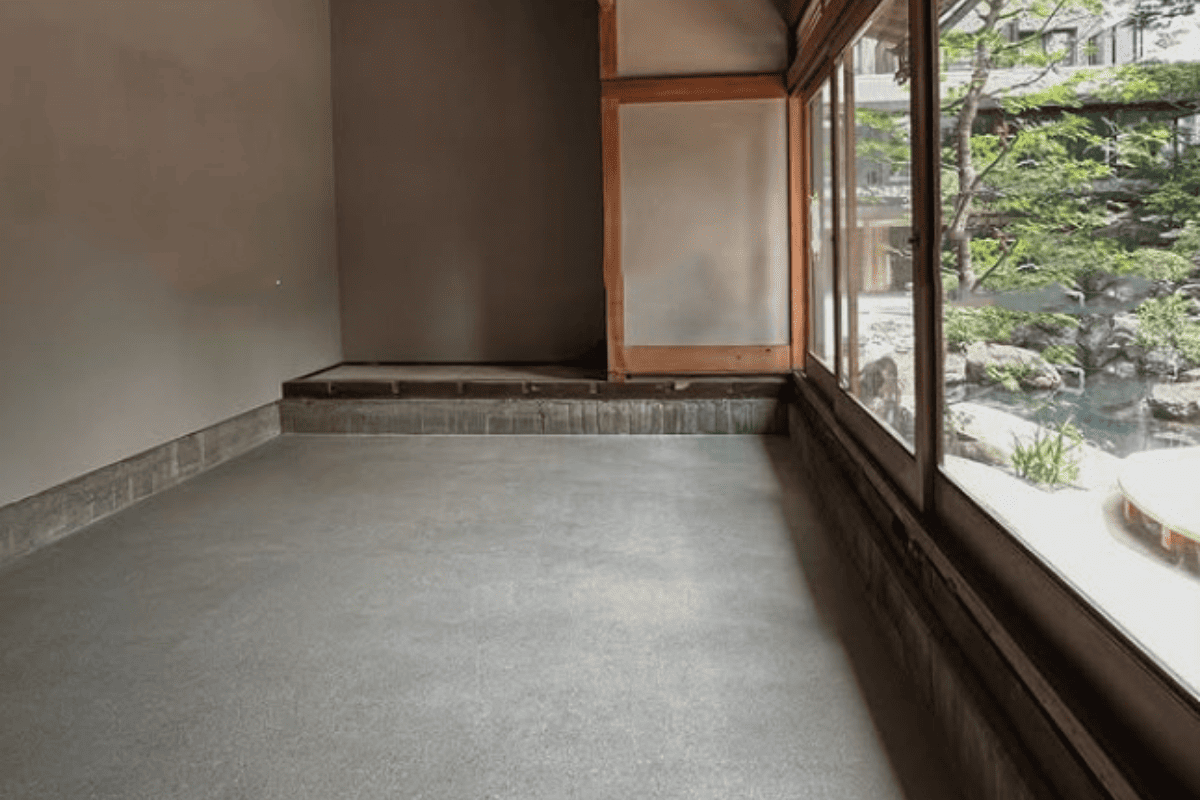 エクストンは、フロアエージェントが開発した独自の研ぎ出し左官仕上げ工法です。骨材の選定や配合、研磨工程を高度にコントロールすることで、従来の研ぎ出し仕上げでは難しかった色彩や質感をより自由に設計できる点が特長です。その高い意匠性から、ブランドショップや商業施設など、空間デザインの完成度が求められる新設工事に数多く採用されています。さらにエクストンは国内生産体制を確立しており、海外製左官材に見られる輸入価格の変動や物流の不安定さに左右されにくく、安定した品質と供給体制を実現しています。