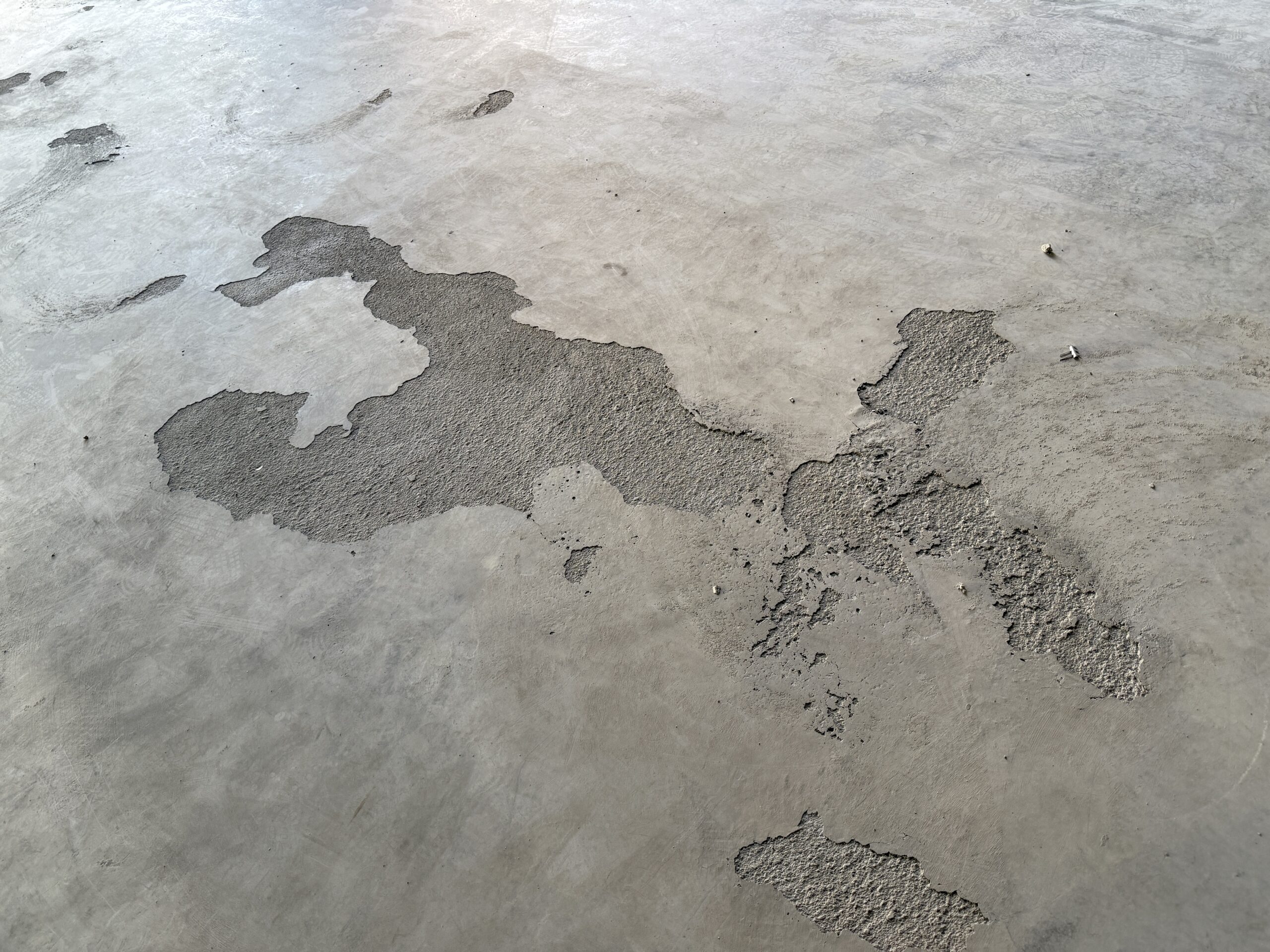 新築の場合は別ですが、既存の床をAGV対応にする場合、まずは現状の床についてしっかりと調査を行う必要があります。特に床が広い場合は、コンクリートの欠損や塗料のハガレなどにより、見た目以上に床レベルの誤差が生じている場合が数多く見受けられます。そのため、現状の床レベルを測定+デジタル分析した後に、ヒートマップやレベル表に起こして、お客さまへ正確に床の現状を判断頂くための資料を作成します。