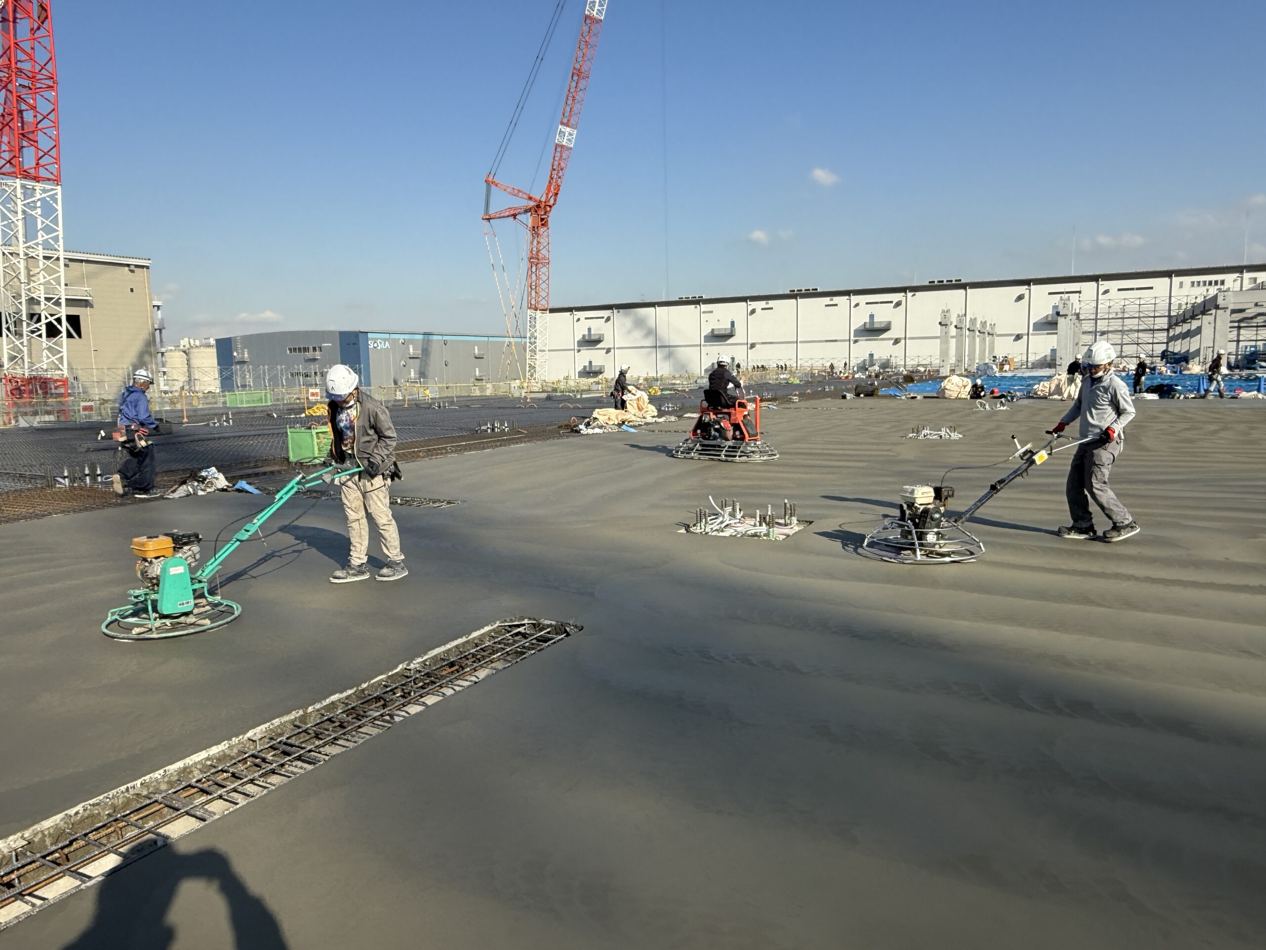 施工期間については、床の状態や環境によって前後しますが、目安として研磨仕上げのみの場合、100㎡あたり2〜3日程度をを見込んでおります。研磨の他、塗床などを行う場合は10〜14日程度を要します。詳しくはフロアエージェントまでお気軽にご相談ください。